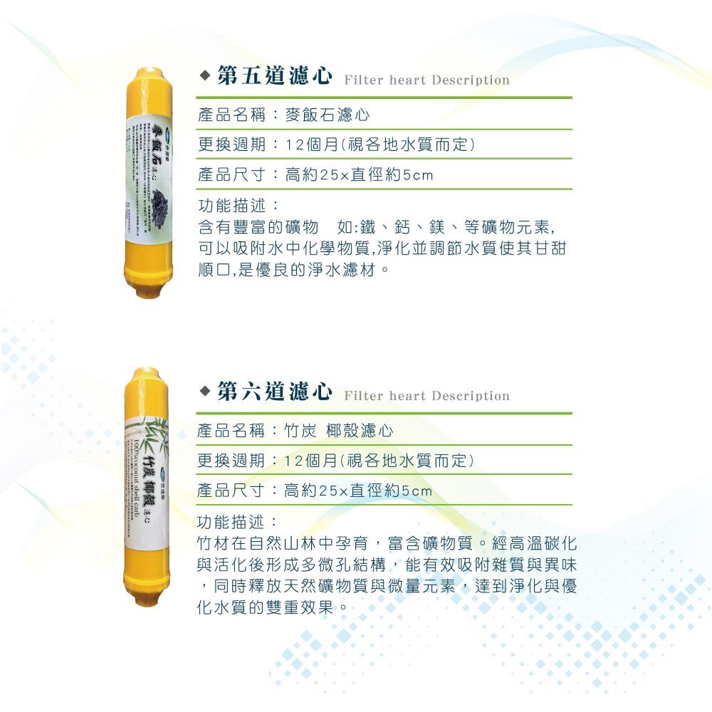.七道濾心增添竹炭麥飯礦石濾心