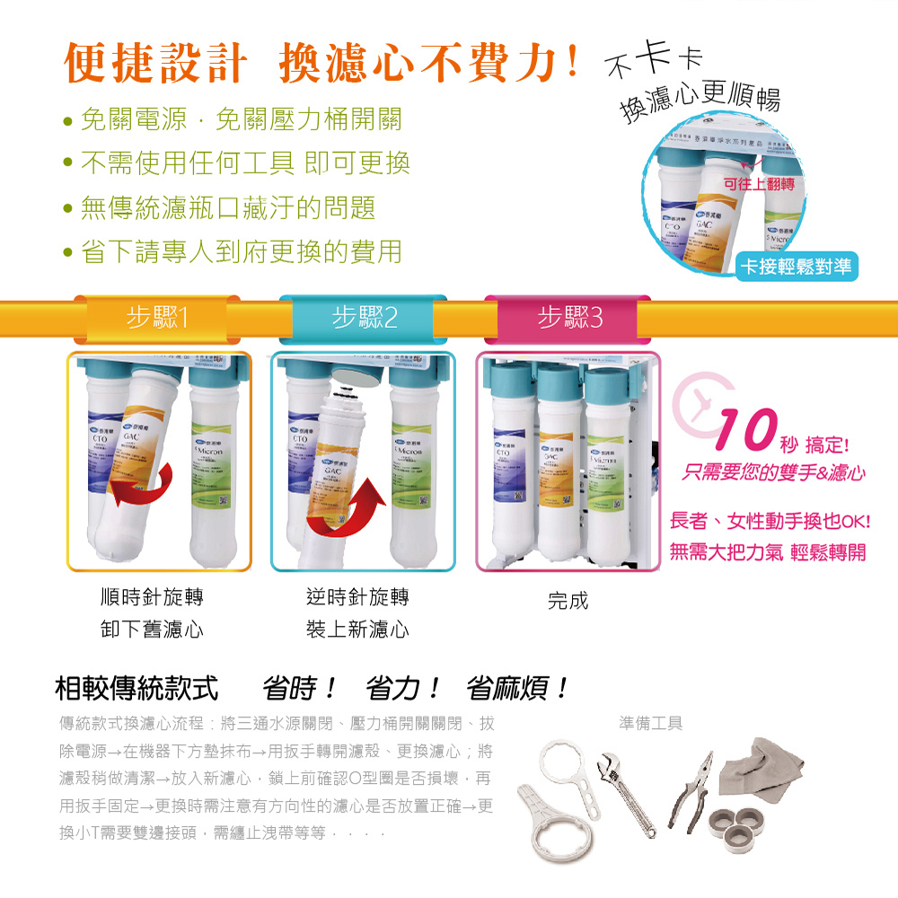 .快拆式濾心,免工具輕鬆換