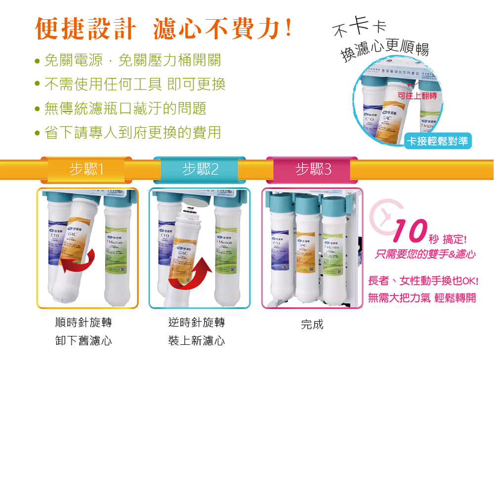 .快接式濾心免工具更換
